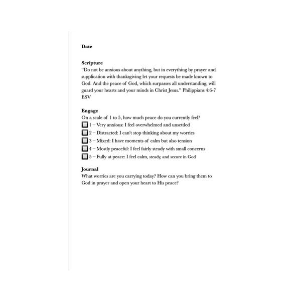 When you find yourself in the middle of anxious moments, reach for this journal as a place to pause, reset, and refocus your heart on the steady truth of God’s promises. You are held. You are seen. You are anchored in a God who never lets go!